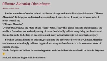 I want you to know what I mean when I say. “Climate Alarmist” Overall this group is the “End of the World” folks. Today this group consists of…… Read More
